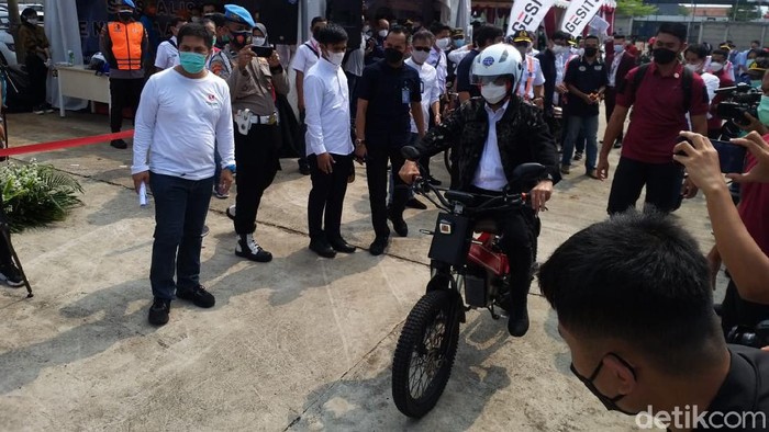 “Hari ini saya bahagia tadi baru coba motor buatan anak bangsa, UMKM, mereka mampu membuat motor listrik, bentuknya bagus, tenaganya bagus, TKDN mencapai 50%. Oleh karena itu kita ingin sekali produk dalam negeri ini bisa maju dan bisa dipasarkan dalam jumlah yang banyak,” ujarnya di Bekasi, Jawa Barat, Minggu (18/4/2021).