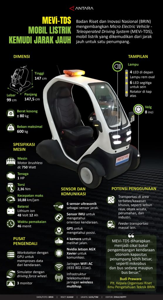 MEVi-TDS singkatan dari Micro Electric Vehicle-Teleoperated Driving System. Secara desain, kendaraan ini memang tidak sebesar Tesla, tetapi BRIN mengatakan bahwa MEVi-TDS ini simply futuristic.